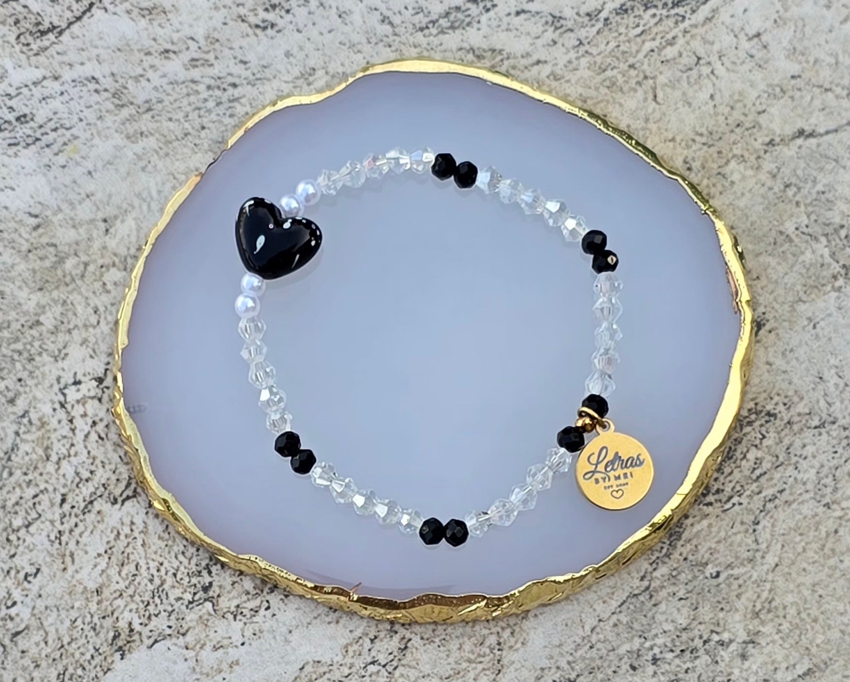 ✨ Hecha a mano con cristales en tonos negro y blanco: contraste de fortaleza y calma. Materiales seleccionados con amor y propósito.